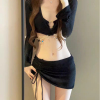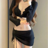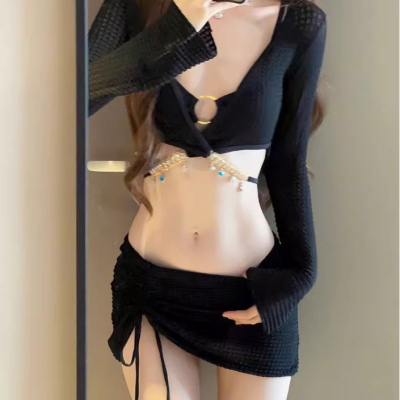 黑色华夫格比基尼四件套