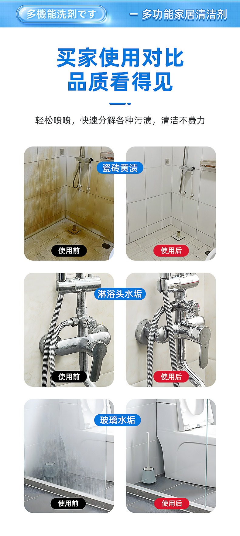 多功能家居清洁剂 - 俏代美家居多功能清洁剂浴室瓷砖玻璃去污神器厨房油污家具清洗剂