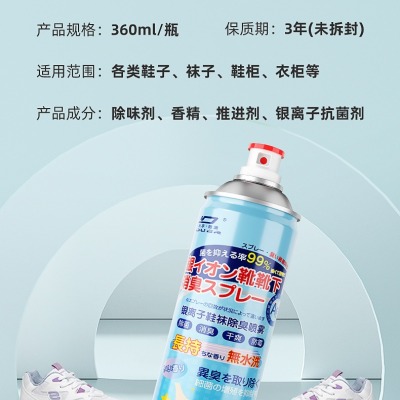 气罐银离子清新喷雾360ml - 鞋袜除臭喷雾剂球鞋鞋柜去除异味鞋子防臭去脚臭汗臭按压式除臭剂